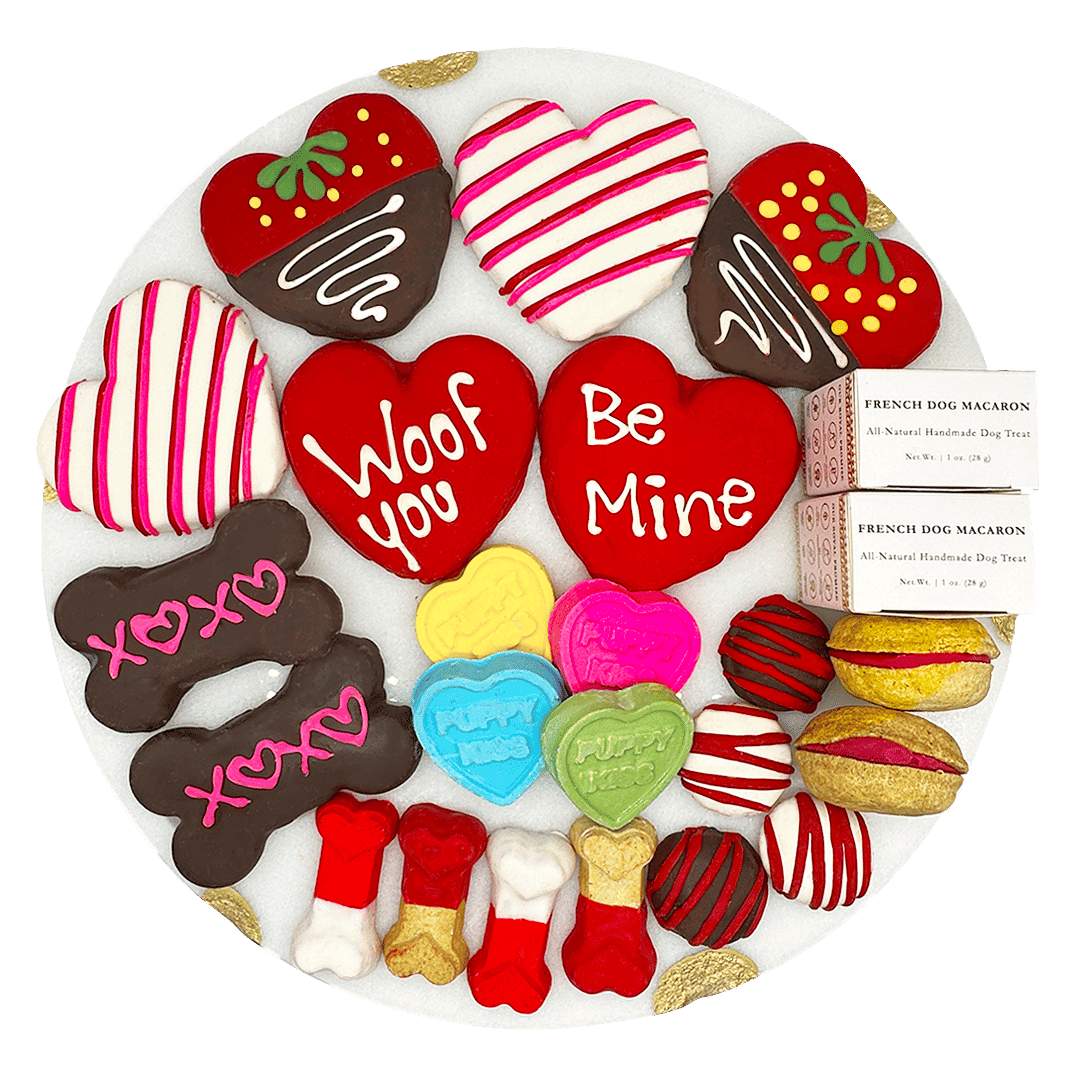 - Includes 22 themed treats including various sized hearts, dog bones, macarons, and truffles, etc.