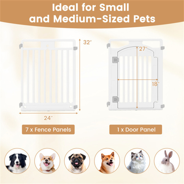 ● Convenient Access and Portable Design: The puppy exercise pen is equipped with a lockable door rail, keeping your dog safe while enabling easy opening and closing. Plus, it is easy to set up to take down, with no extra tools required, making it perfect for use in living areas, yards, or even during trips and picnics.