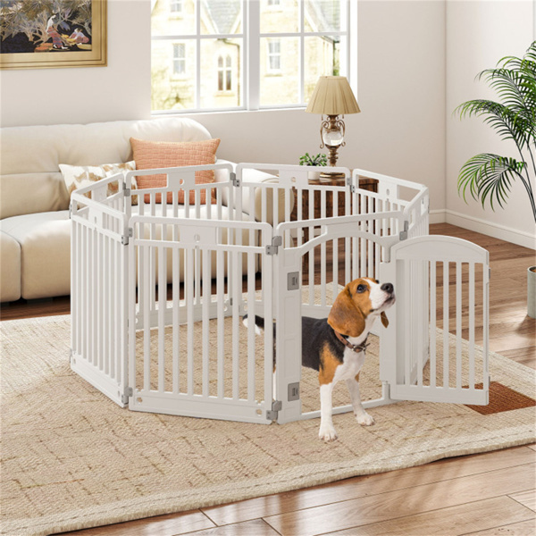 ● Multiple Configuration Options: This pet playpen includes 8 panels that can be assembled into various shapes such as an octagon, hexagon, house with a roof, square, or rectangle, featuring convenient connectors for easy assembly and disassembly. Expand your setup by integrating more panels to create larger spaces.