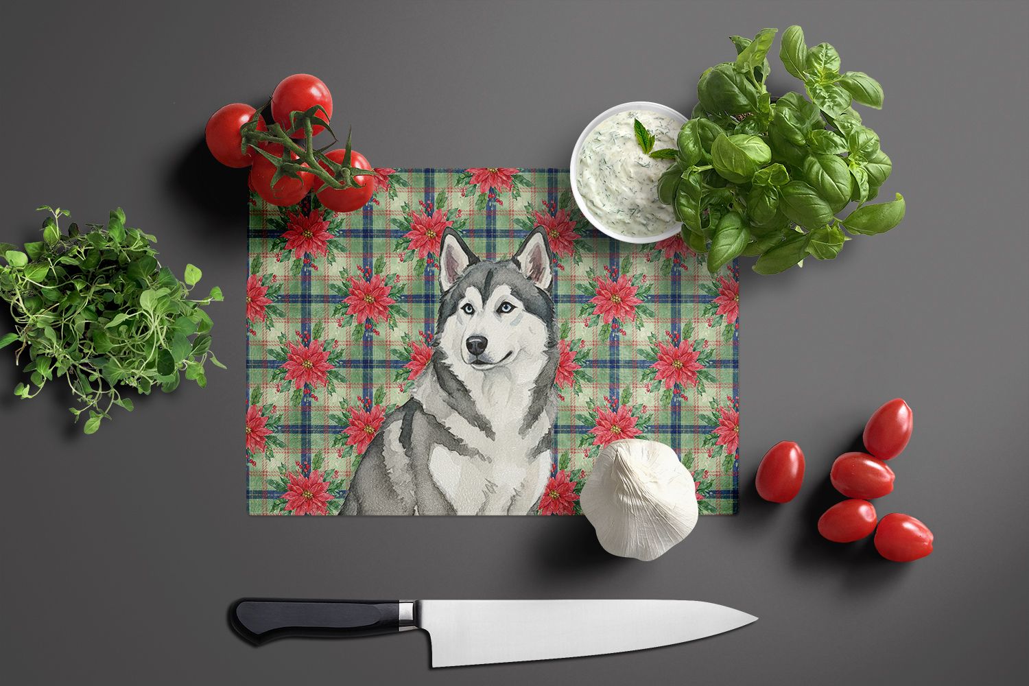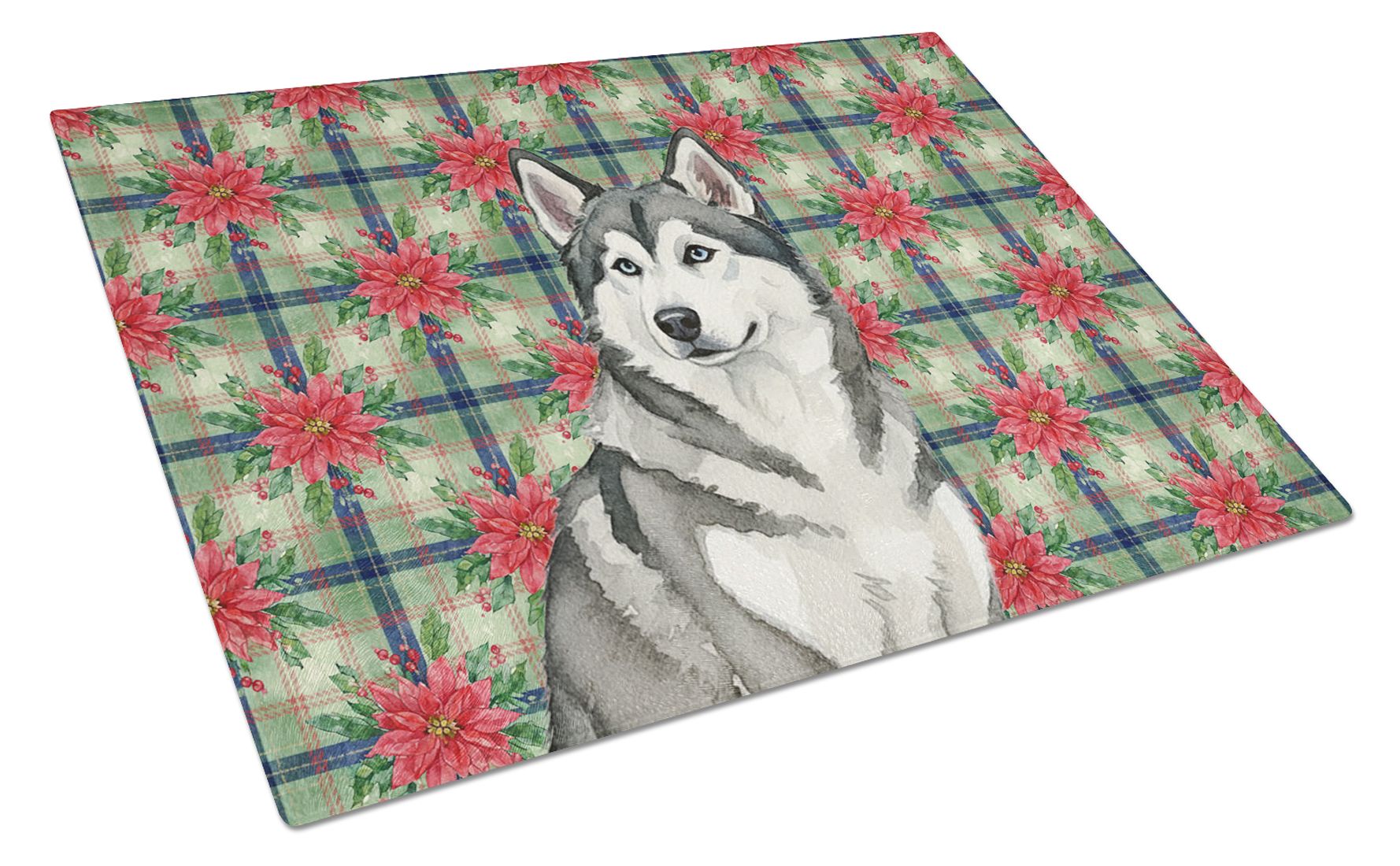 Home > Gray and White Alaskan Malamute Christmas PoinsettIas Glass Cutting Board Decorative Tempered Glass Kitchen Cutting and Serving Board Large Size Chopp