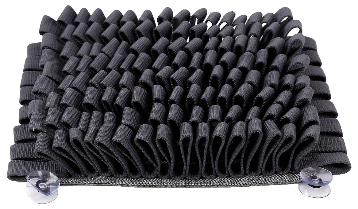 The Pet Life ® 'Sniffer Grip' Interactive Anti-Skid Pet Snuffle Mat features 4 Industrial-Grade large suction grips that are engineered to stick to hard surfaces and glass in seconds with a pinch-to-release flap for easy removal. The Sniffer-Grip Interactive Feeding Mat is designed to sharpen their senses, natural hunting instincts and cognitive skills during feedings all while easing digestion and doubling as a slow feeder. Features numerous loops that are composed of Tear-Proof Nylon Webbing with Reinforced Stitching that's built-to-last and tear-proof. This mat also features additional Micro-embedded grips on the reverse and completely rolls up making it ideal for travel. This Mat is also easy to clean and Machine Washable. Available in Multiple Colors.